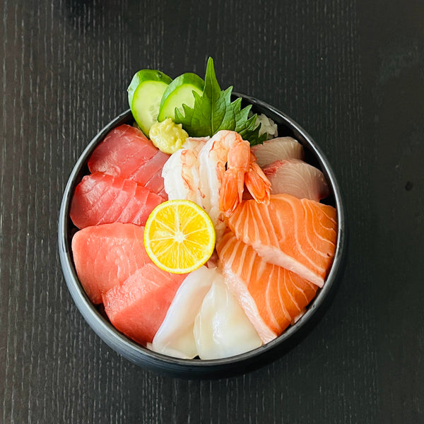 Kaisendon (海鮮丼) is a simple yet elegant Japanese dish where fresh seafood is artfully arranged on a bed of rice in a donburi bowl. The name "kaisendon" translates directly to its components: 海 (Kai = sea), 鮮 (Sen = fresh), 丼 (Don = donburi bowl), which perfectly describes the dish itself.