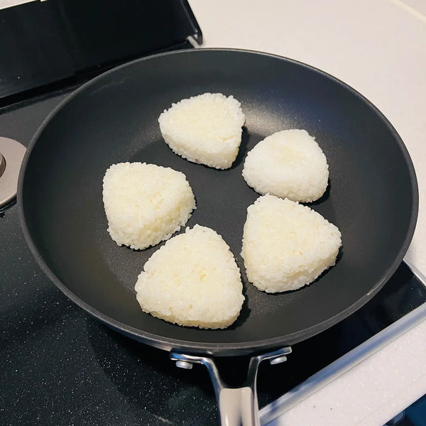Press tightly when shaping: Pressing the onigiri tightly helps it keep its iconic triangle shape and prevents it from breaking while grilling or frying. This is especially useful if you’re trying how to fry onigiri or even make air fryer yaki onigiri.