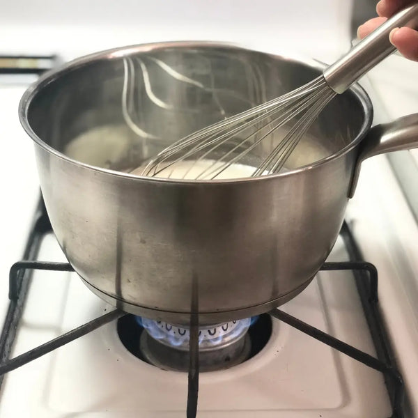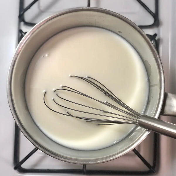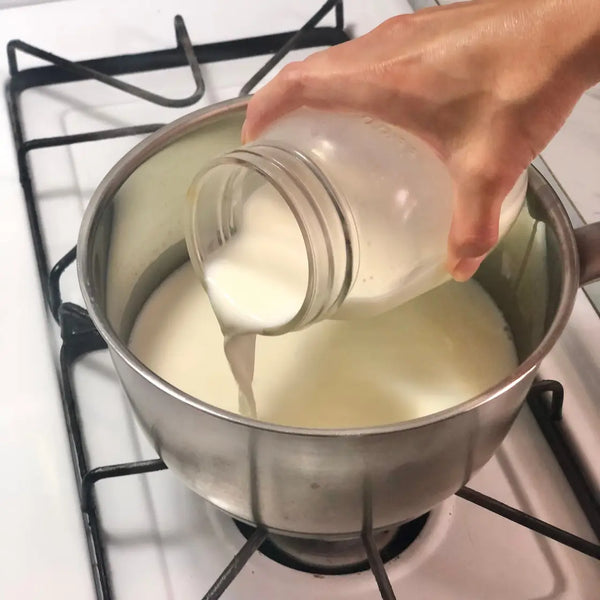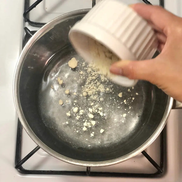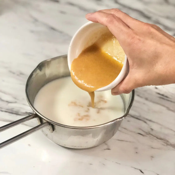 We mix apricot kernel powder with some sugar, milk (or almond milk if you're feeling extra fancy), and gelatin or agar-agar (a seaweed-based gelling agent). We heat the mixture up, give it a good stir, and bam! We've got annin tofu with a smooth, jiggly texture that's to die for!