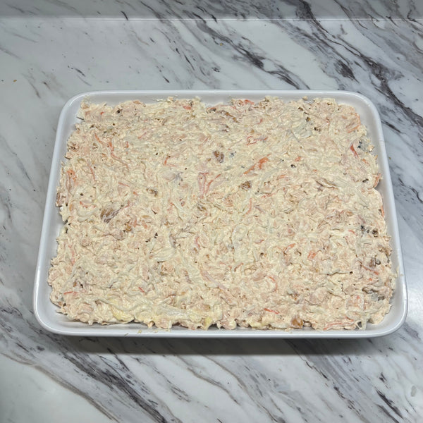 At its core, sushi bake starts with a layer of seasoned sushi rice, topped with a creamy, savory mixture made from flaked cooked salmon and shredded imitation crab sticks, usually mixed with Japanese mayo and sometimes cream cheese or sriracha.