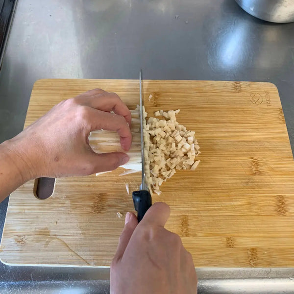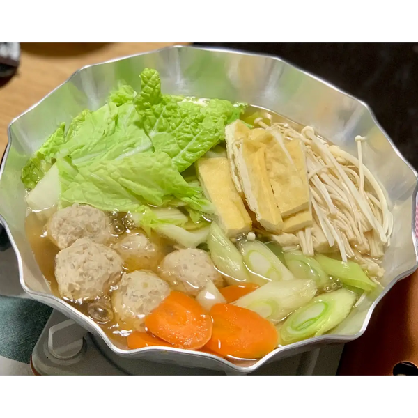 A common recipe for chanko nabe consists of chicken meatballs, napa cabbage, Japanese leek, and mushrooms cooked in a chicken-based broth. The sight of a family eating around the same nabe (hotpot) is a typical Japanese winter event. It is common to gather around and cook while eating nabe at the dining table using a tabletop gas stove or an electric pot. If you do not have a portable gas stove or electric pot, you can make chanko nabe using a regular kitchen stove and serve each portion individually.