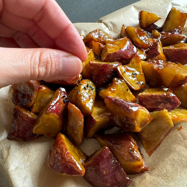 The flavor is a delightful combination of candied sweetness and the earthy taste of sweet potatoes. The candy coating is flavored with sugar, mirin, and soy sauce, delivering a harmonious mix of sweet, salty, and umami flavors.