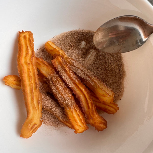 • Once golden and crisp, drain the churros on a paper towel-lined plate before coating them in sugar to lock in their perfect crunch.