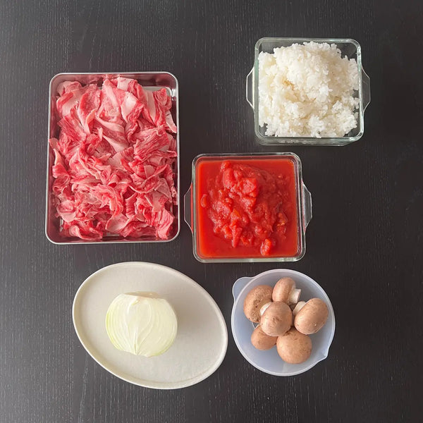 In this recipe, we'll show you how to make Hayashi Rice from scratch, without leaning on ready-made roux or demi-glace sauce. Just grab some canned tomatoes, ketchup, and sauces like Worcester and Chuno – which are typical Japanese pantry items. They'll bring the umami without the need for demi-glace sauce.