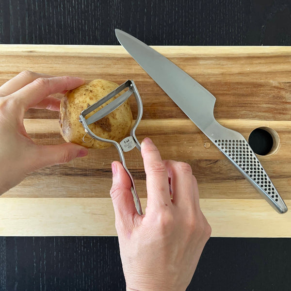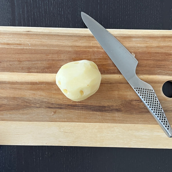 Let me introduce the ingredients and how to make potato mochi. The ingredients and process are very simple. It’s made with potatoes and potato starch, not with the glutinous rice typically used in regular mochi made from mochigome (glutinous rice). Unlike other dishes made with glutinous rice flour such as butter mochi, potato mochi gets its chewy texture from the potato starch, which is reminiscent of mochi.