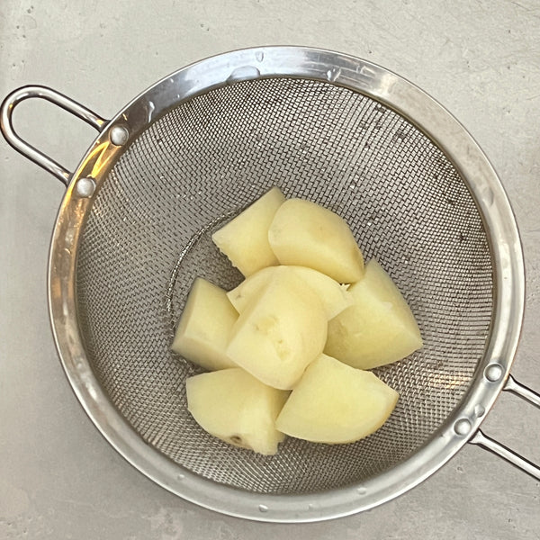 • Boil the potatoes thoroughly. It’s important to boil the potatoes well so they can be mashed smoothly. Finely mashed potatoes create a smoother texture, which improves the overall taste.