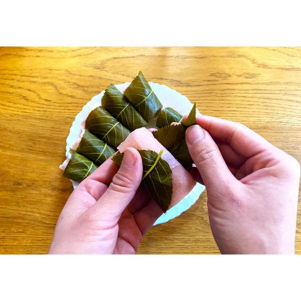 In our recipe, we are mixing all-purpose flour with Shiratamako glutinous rice flour to achieve sakura mochi’s chewy texture. We are also using real salted sakura leaves, which can be purchased online. When eating sakura mochi, you can eat the leaf or choose to remove it before eating. Even if you remove the leaf, you will still be able to enjoy the aroma of cherry blossoms. However, if you remove the leaf, it may dry the mochi up.