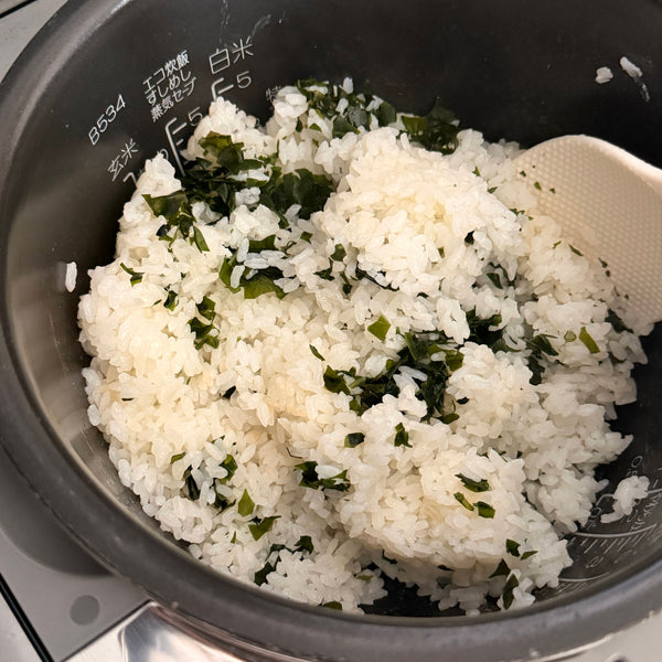 Today, I’m introducing one common kyushoku menu: wakame gohan, karaage, kenchin-jiru, cabbage ohitashi, fruit punch, almond fish snack, and milk. These were common in my school life, and my daughter still eats this today!