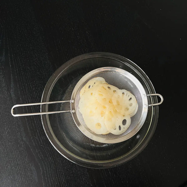 When cutting lotus root, a slicer helps you to make thinner slices. The thinner the slice, the crispier the chip!