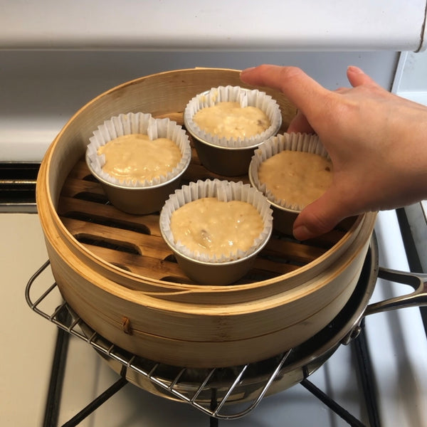 Here’s a tip to make perfect mushi-pan: preheat your steamer and cover it with a kitchen towel to prevent water from dripping onto the cakes. If your cakes turn out dense, try sifting the flour or adding a little more baking powder.