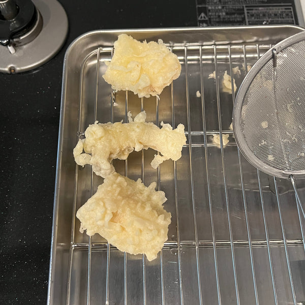 For a touch of seasonal flair, try adding autumn ingredients like sweet potatoes, chestnuts, or gingko nuts to your tempura. A light sprinkle of salt before eating enhances their natural sweetness and pairs perfectly with the crispy batter.