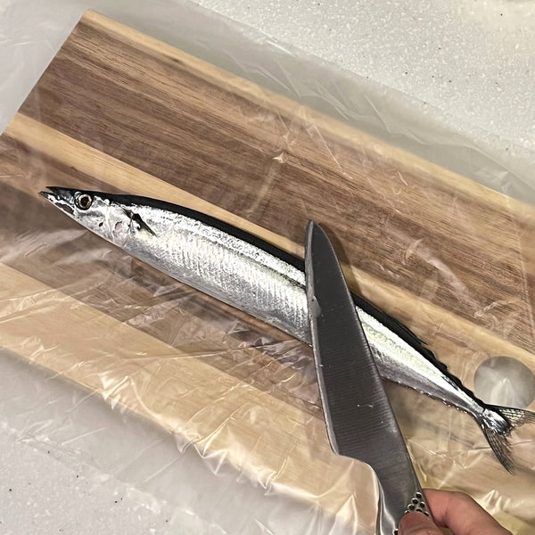 Sanma thrives in the North Pacific Ocean and is often called the "autumn fish" in Japan, as it’s at its most delicious during this season. With its slim, sword-like body, Sanma is written as “秋刀魚” in Japanese, where each Kanji character represents its essence: “秋 (autumn),” “刀 (sword),” and “魚 (fish).”