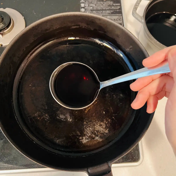 - "Warishita" is used as the seasoning: For Kanto-style Sukiyaki, Warishita is used as the seasoning base, and the ingredients are simmered in it. Warishita is a sauce made of sugar, soy sauce, mirin, and sake, all of which are mixed together beforehand. In contrast, Kansai-style Sukiyaki doesn’t use "Warishita." Instead, it requires adding seasonings such as sugar and soy sauce one by one while checking the overall taste. This difference stems from the fact that Kanto-style Sukiyaki started its history from "Gyu-nabe (beef hot pot)" in which the ingredients are simmered with a seasoning sauce.
