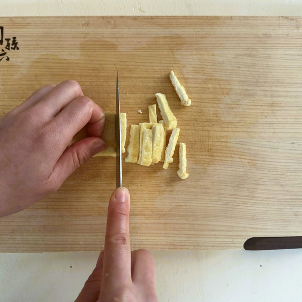 Supporting Ingredient – Aburaage: Aburaage adds savory depth to the dish. The thin tofu absorbs the seasoned broth while cooking, contributing additional umami and richness.