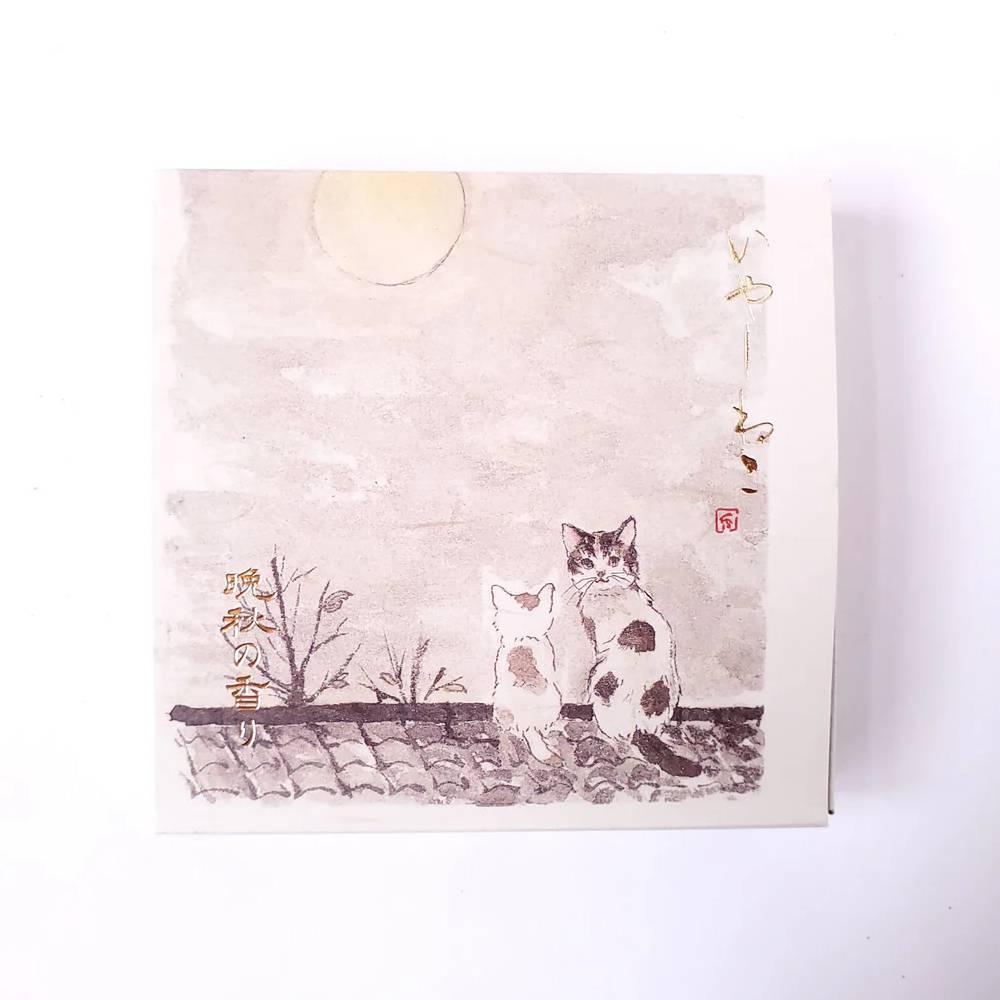 This set includes 10 cones, a compact burner, and packaging featuring a cozy cat in a gentle autumn scene, making it a comforting, seasonal gift.