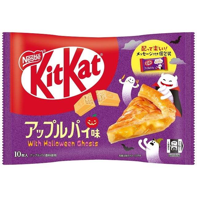 A delicious crispy Kit Kat wafer coating in a unique apple pie flavored white chocolate, featuring cute little ghost characters on every individual package!