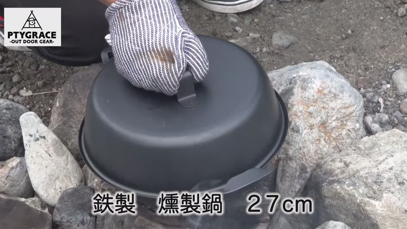 Ptygrace Iron Smoker Durable Smoking Pot & Grill For Camping 27cm