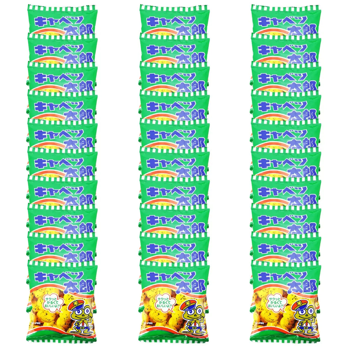 Yaokin Cabbage Taro is a long-selling Japanese snack consisting of puffed corn balls infused with aonori seaweed and Japanese sauce.
